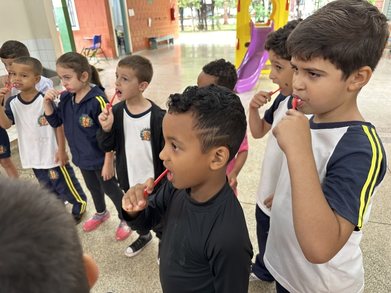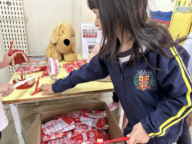 Fotos Alunos ganham kit de higiene e tratamento bucal